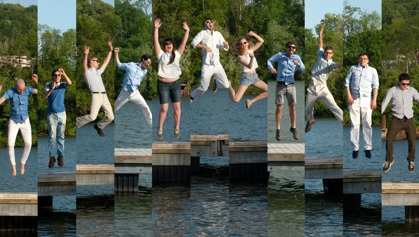 Let's see, Justin's in the middle there, and there's Tim, and Rachel, and Alaina...maybe you should check out their website for a full listing. Not pictured: even more members of Marina Orchestra!